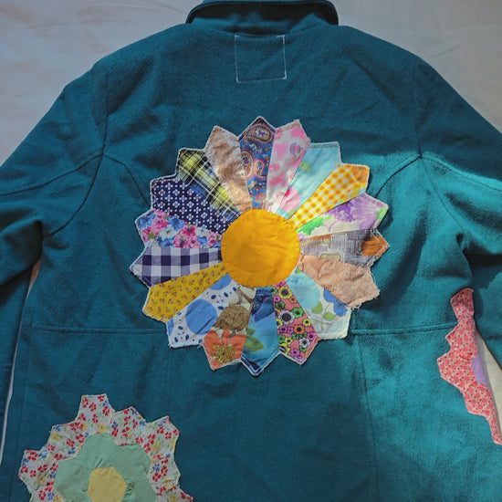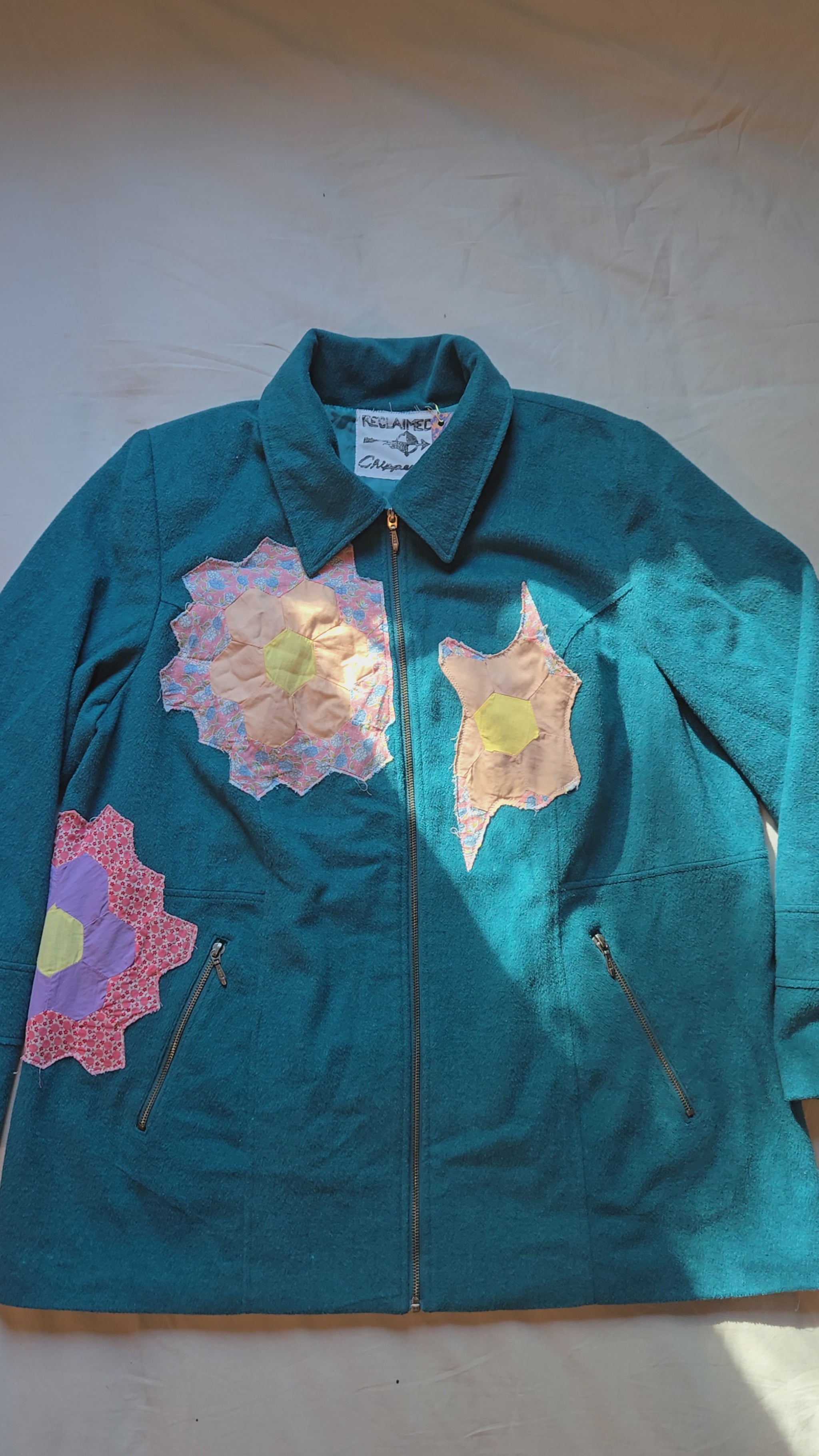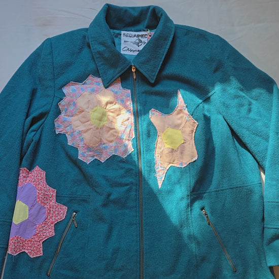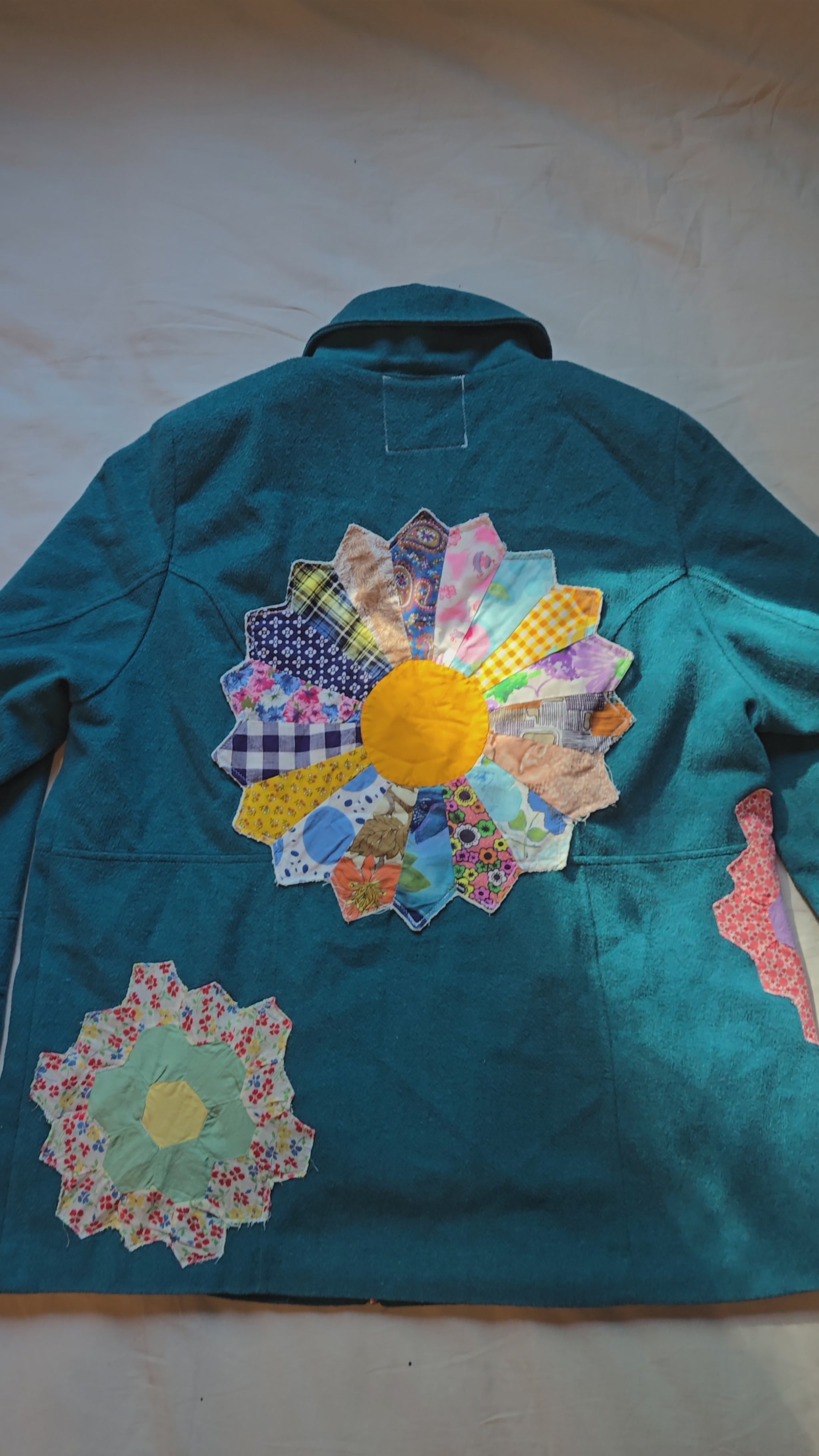 This is an upcycled jacket, made with gifted quilted patches! They are far too beautiful to have tucked away with all my fabric - I hope you love them too!